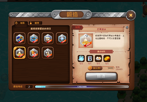 期間限定地形道具,是台灣最具代表性的冰品,非常受國人與觀光客喜愛,在剉冰上覆蓋新鮮的芒果、煉乳、冰淇淋製作而成,在草原上可以建造出芒果剉冰專賣店。